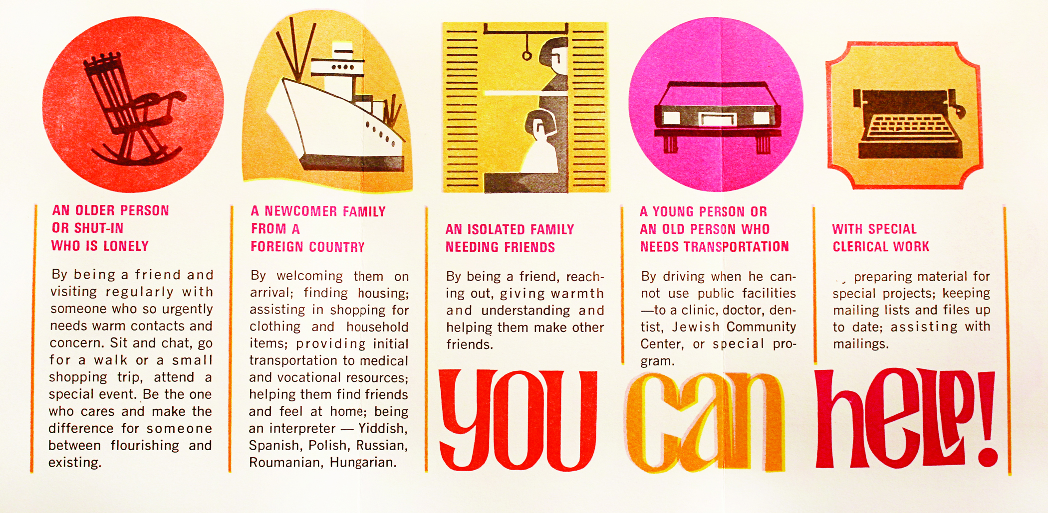 A significant difference between JFSA’s program and other hospital, recreation, children homes and mental institutions, is that JFSA’s volunteers work alone to bring their services to the homes of the lonely, sick, handicapped and aged. They assist and supplement the work of the JFSA professional staff.